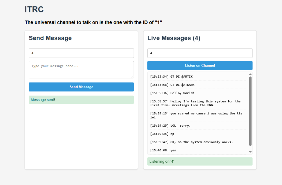 FNG TESTS ITRC SYSTEM The Friendship Nations Group took part in one of the first-ever tests of a ITRC communication system being developed by a micronation called Pommerski, who has been a member of the FNG since 11 Nov 2025. The test was extremely successful, and although short, this test demonstrates that this system of international communication is a viable alternative to the DM messaging system used by Discord. The ITRC (Internet Transmit Receive Communication) is described by Pommerski as “a radio that you read” but will soon incorporate a text-to-speech function to make it easier to use. The system still needs to be developed further to ensure there are no technical issues, but the organiser of the Friendship Nations Group is interested in using ITRC as a two-way communication channel with new and existing members of the group. Below is a screen grab of the first-ever conversation between Pommerski and the FNG using this communication system, which at times produced amusing moments with the text-to-speech function. Date: 20 Feb 2026 |